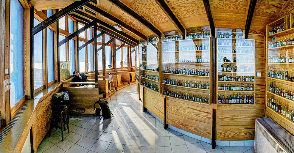 Egy szinttel lejjebb mindet tudó kör-étterem 8000 darabos minipalack-gyűjteménnyel. 13:05